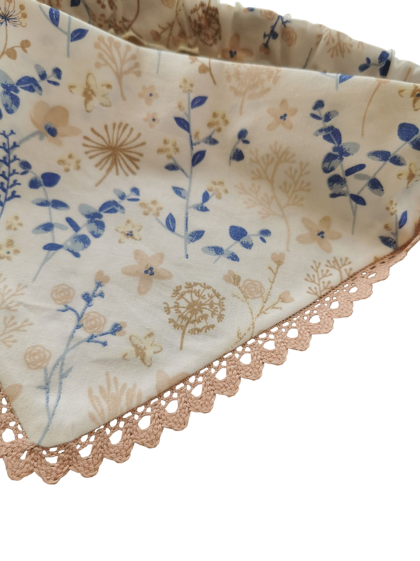 Dieses wunderschöne Hundehalstuch aus feinstem Baumwollstoff begeistert mit einem zarten Blumenmuster, das eine romantische und verspielte Note verleiht. Die filigranen Blumen in sanften Farben machen das Halstuch zu einem echten Hingucker. Abgerundet wird das Design mit einer eleganten rosa Spitzen-Einfassung, die dem Halstuch einen besonders charmanten und femininen Akzent verleiht. Der weiche Baumwollstoff sorgt für angenehmen Tragekomfort, sodass sich Ihr Hund rundum wohlfühlt. Ein perfektes Accessoire für stilvolle Hunde, die es süß und schick mögen!